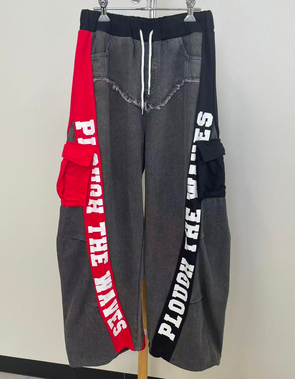 【ABITOKYO】サイドポケット付き配色ロゴラインドロストパンツ 034